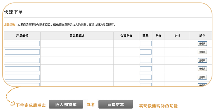如果您知道产品编号,可以通过快速下单功能实现快速下单,省去浏览查找的时间。